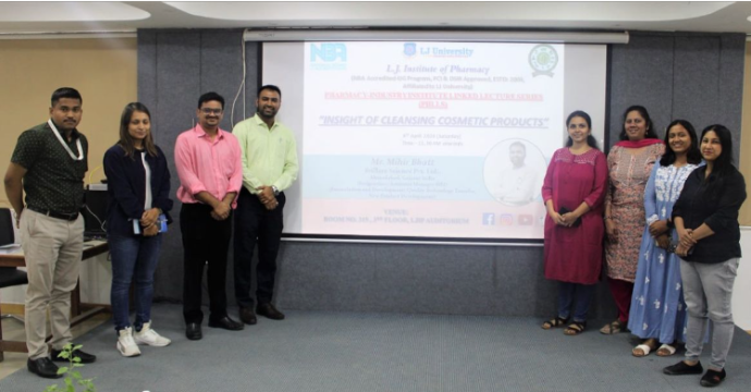 On April 6, 2024, L.J. Institute of Pharmacy hosted a seminar titled "Insights on Cleansing Cosmetic Products" , led by Mr. Mihir Bhatt , Assistant Manager at Brillare Science Pvt. Ltd. The session explored cosmetics' definition, formulation, and industry trends, providing valuable insights for students and professionals.