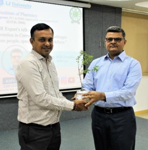 On February 27, 2024, L.J. Institute of Pharmacy hosted a seminar titled "Renewed Human Intervention in Current Regulatory Challenges: What the Industry Wants from the New Workforce." Delivered by Mr. Anuj Shah , Associate Vice President of HR at Intas Pharmaceutical Ltd., the session focused on the evolving regulatory landscape and industry expectations from future professionals.