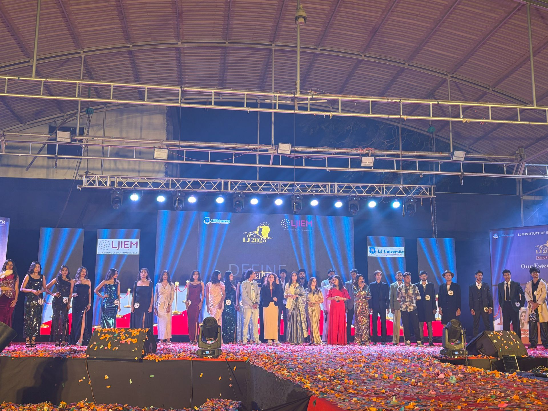The grand finale of the highly anticipated Mr. and Ms. LJ 2025 was held on 11th February 2025 at the LJ Engineering Open Air Theatre, bringing together the most talented finalists from across the university. Organized by the LJ Institute of Event Management, the final round was a celebration of creativity, personality, and performance.